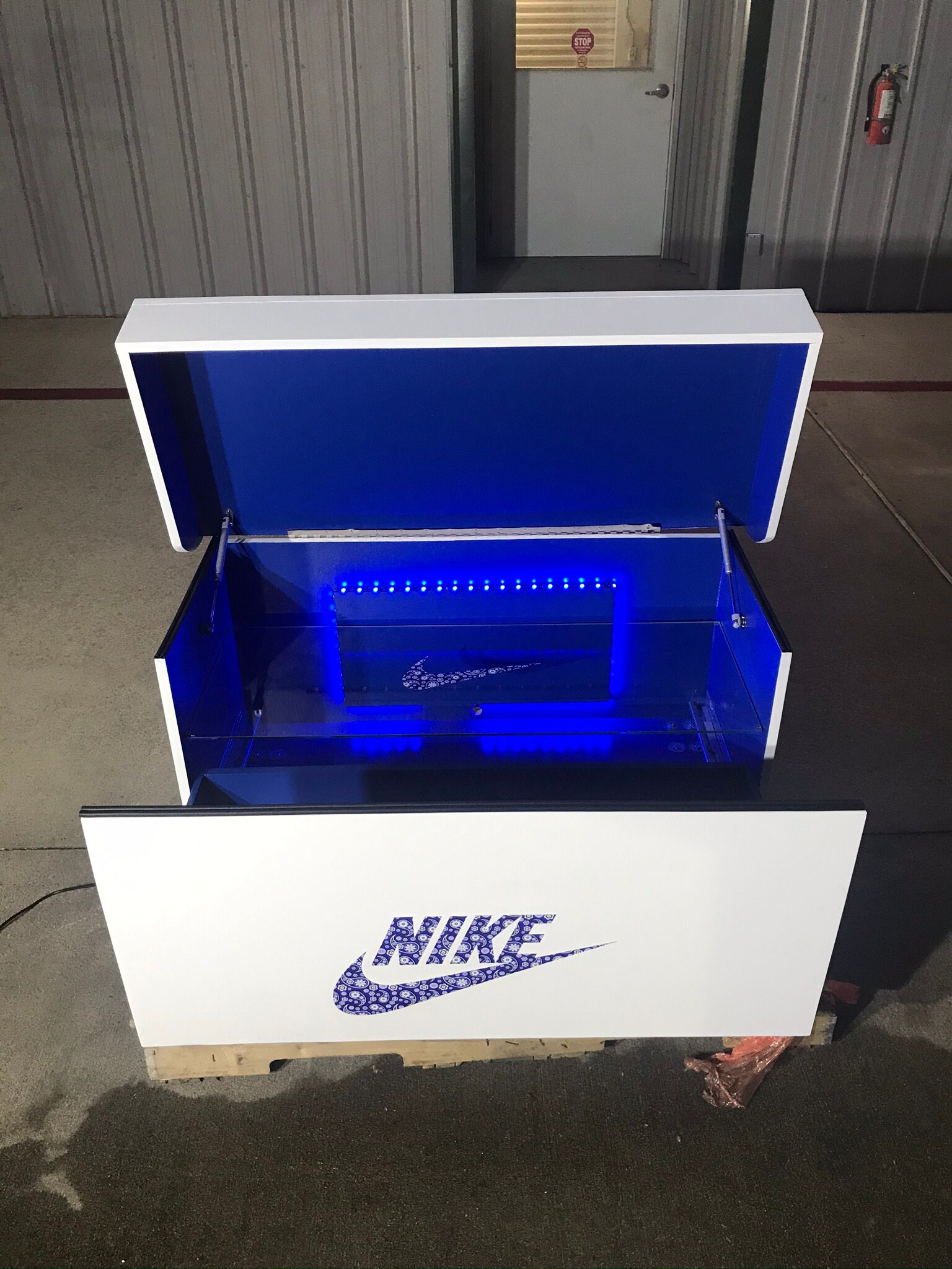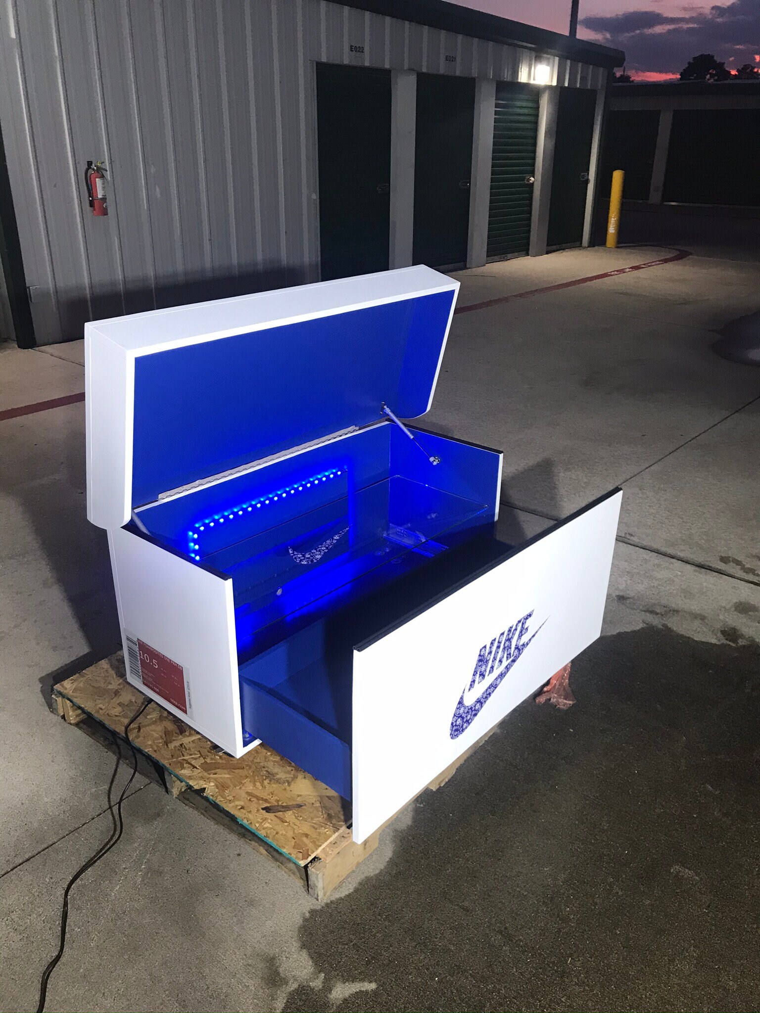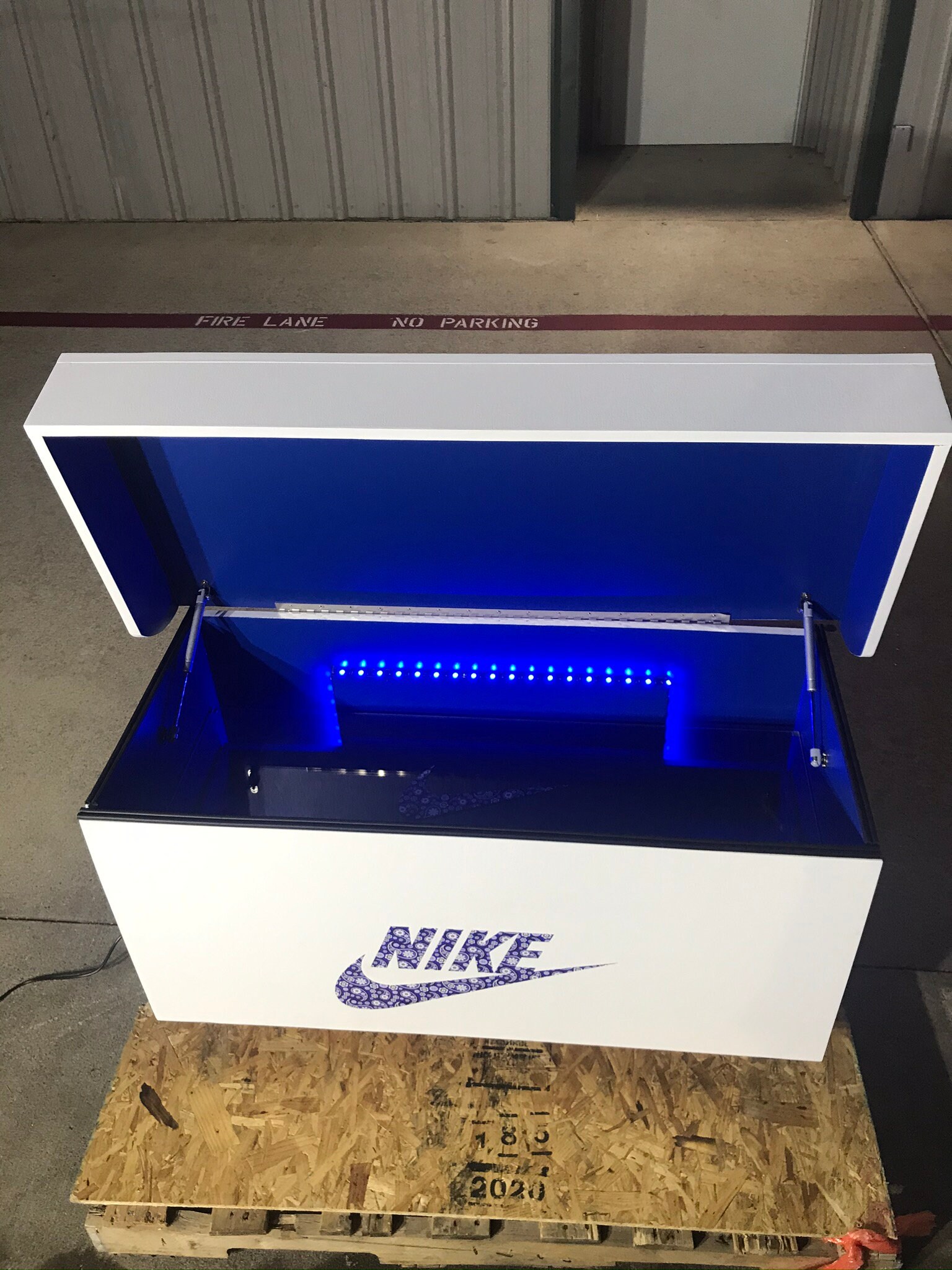 Get your own customized giant sneaker box to showcase your complete shoe collection in a stylish and organized way. crafted by our skilled craftsman this “Paisley print big shoebox” comes in a dual-color design, an eye-catching combination of White and Royal Blue. It’s Bandana Print Pattern Graphics adds a bohemian, street culture yet elegant touch to your interior. Made of cabinet-grade real wood sturdy and strong gas strut lid support and stainless steel piano hinges. its bottom drawer graphic is protected by the acrylic coat that keeps its beauty long-lasting.