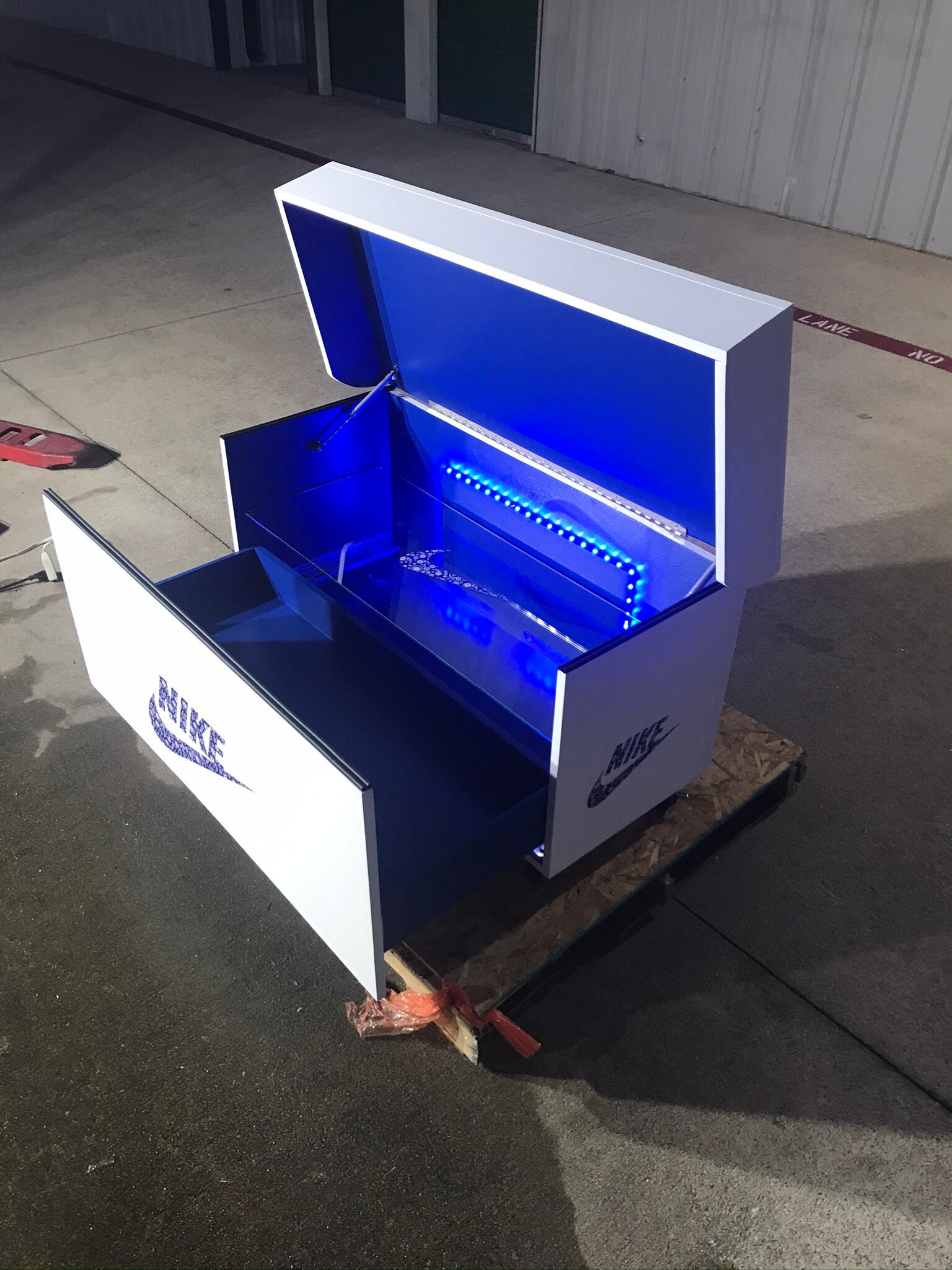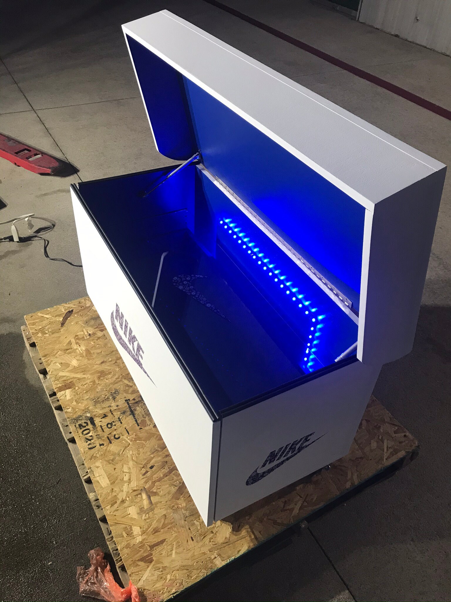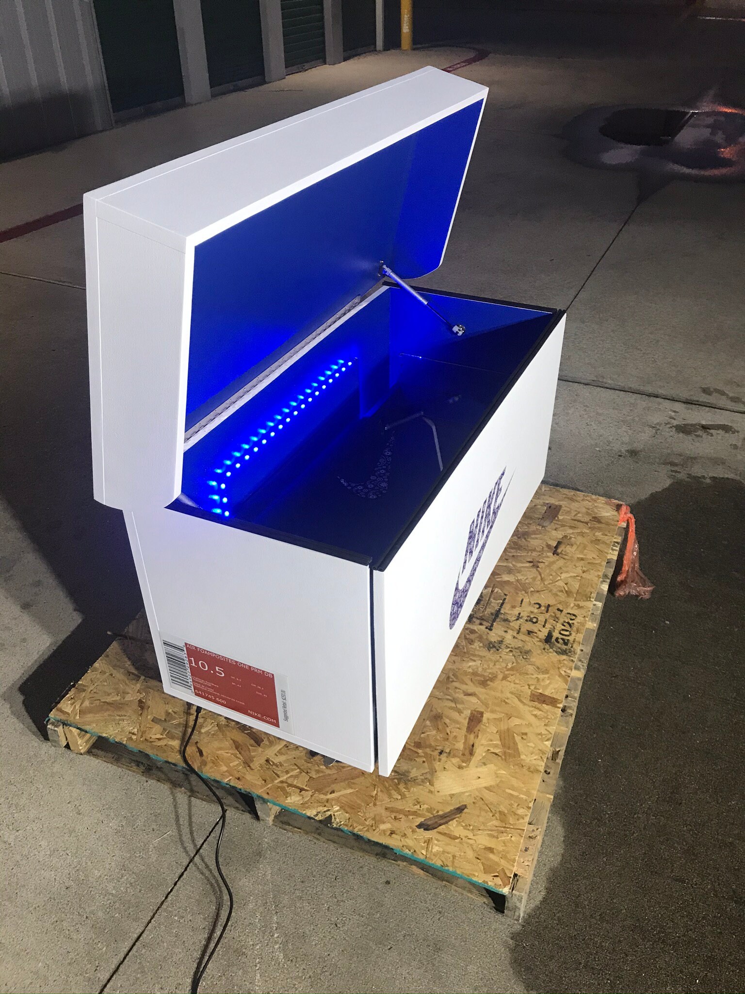 Get your own customized giant sneaker box to showcase your complete shoe collection in a stylish and organized way. crafted by our skilled craftsman this “Paisley print big shoebox” comes in a dual-color design, an eye-catching combination of White and Royal Blue. It’s Bandana Print Pattern Graphics adds a bohemian, street culture yet elegant touch to your interior. Made of cabinet-grade real wood sturdy and strong gas strut lid support and stainless steel piano hinges. its bottom drawer graphic is protected by the acrylic coat that keeps its beauty long-lasting.