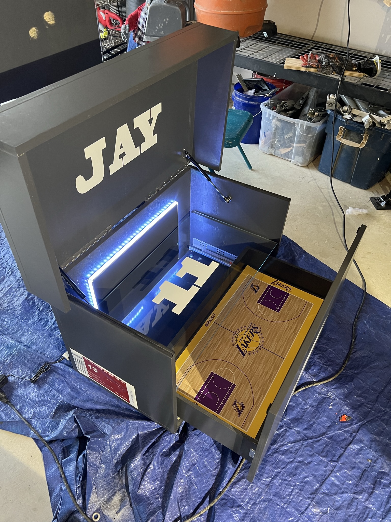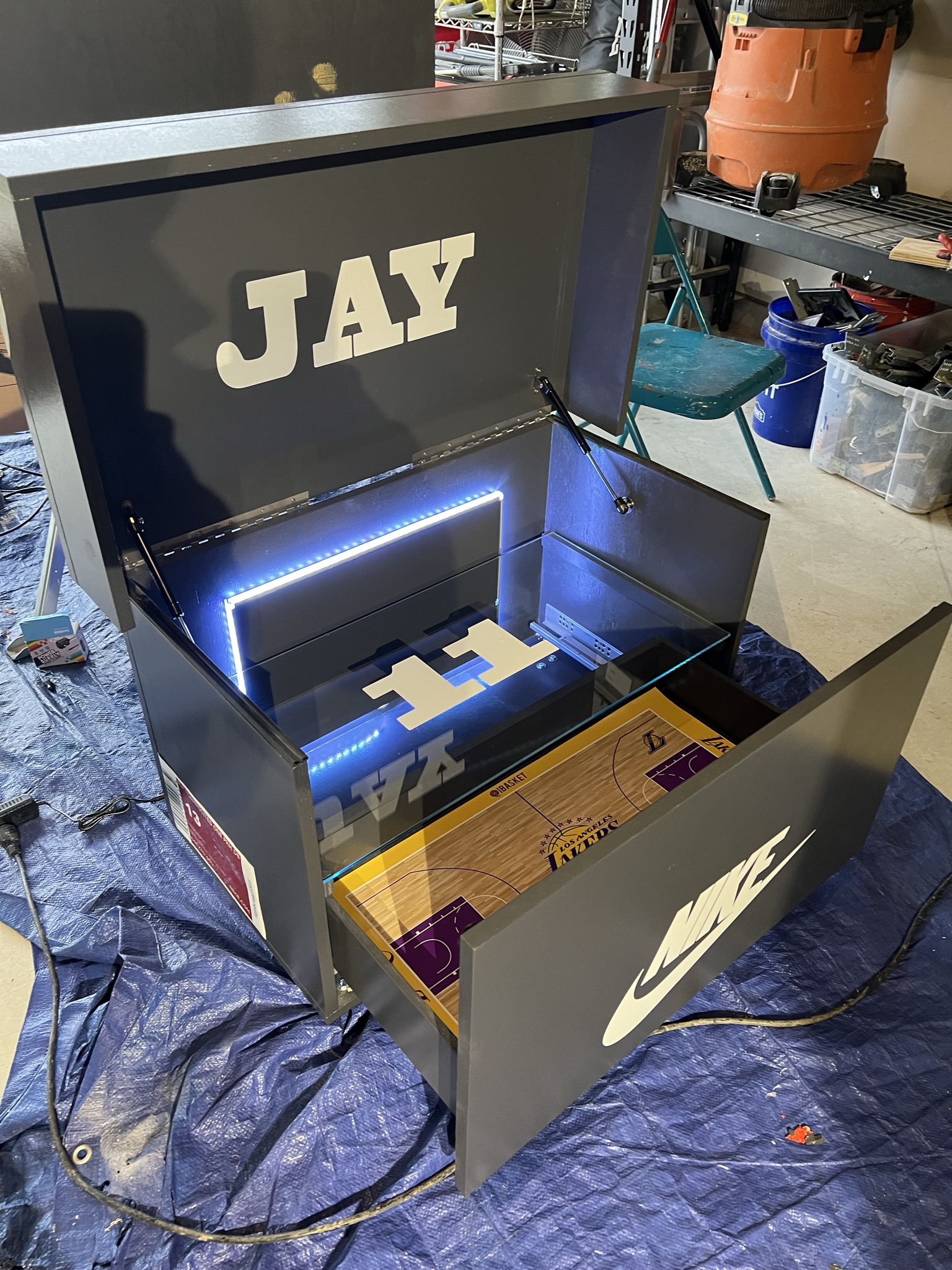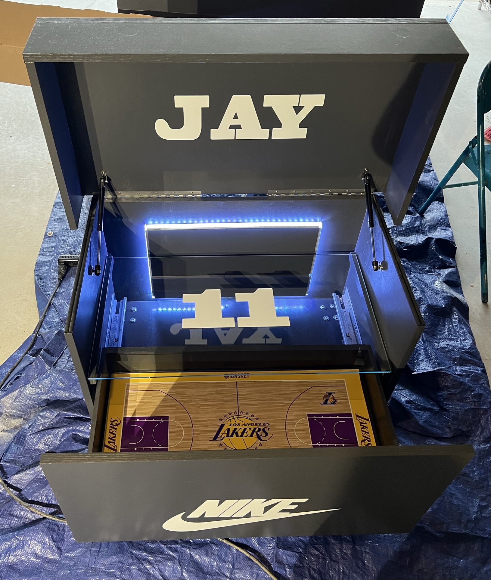 With the lights on and the lid up, it transforms your sneaker display into a centerpiece of creativity and craftsmanship. (Video coming soon.)
