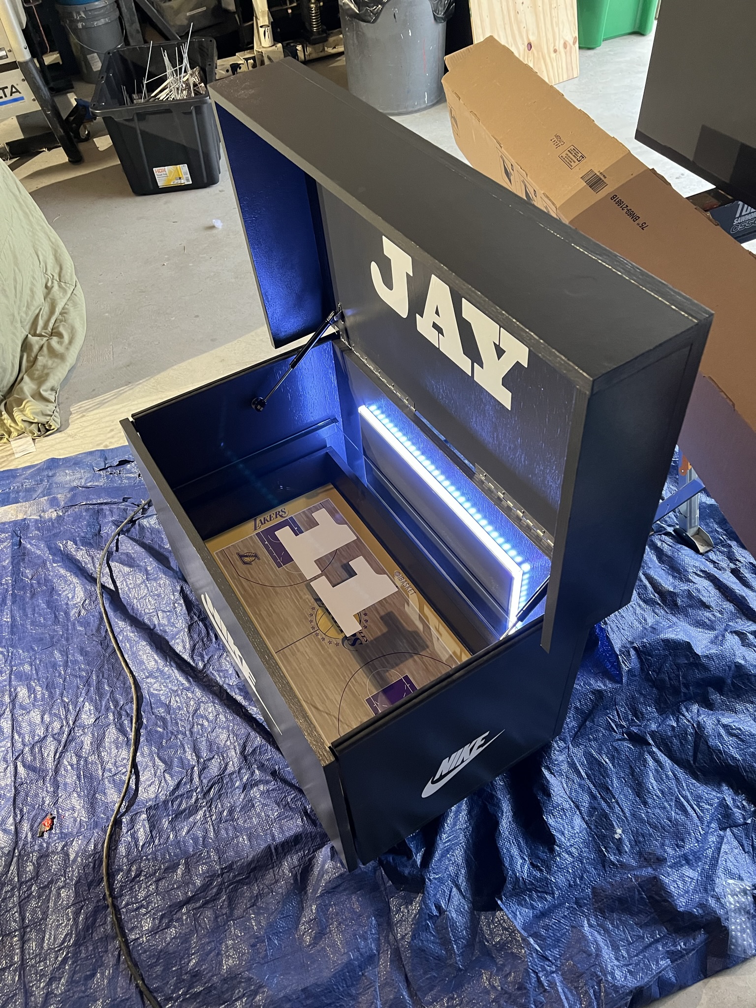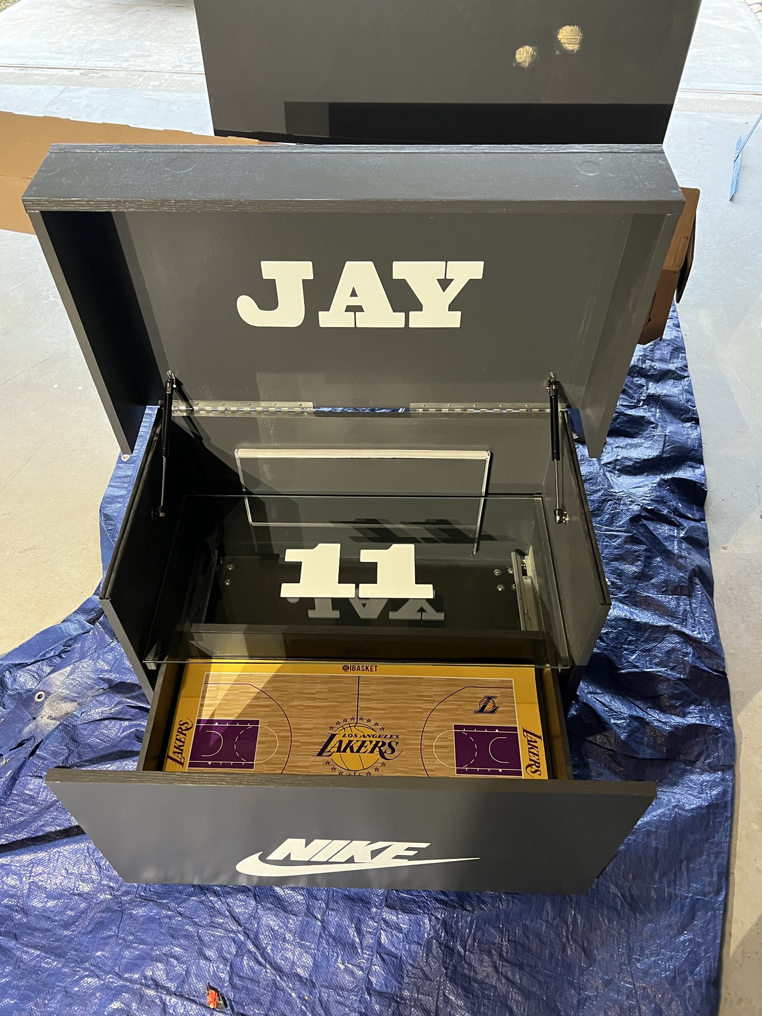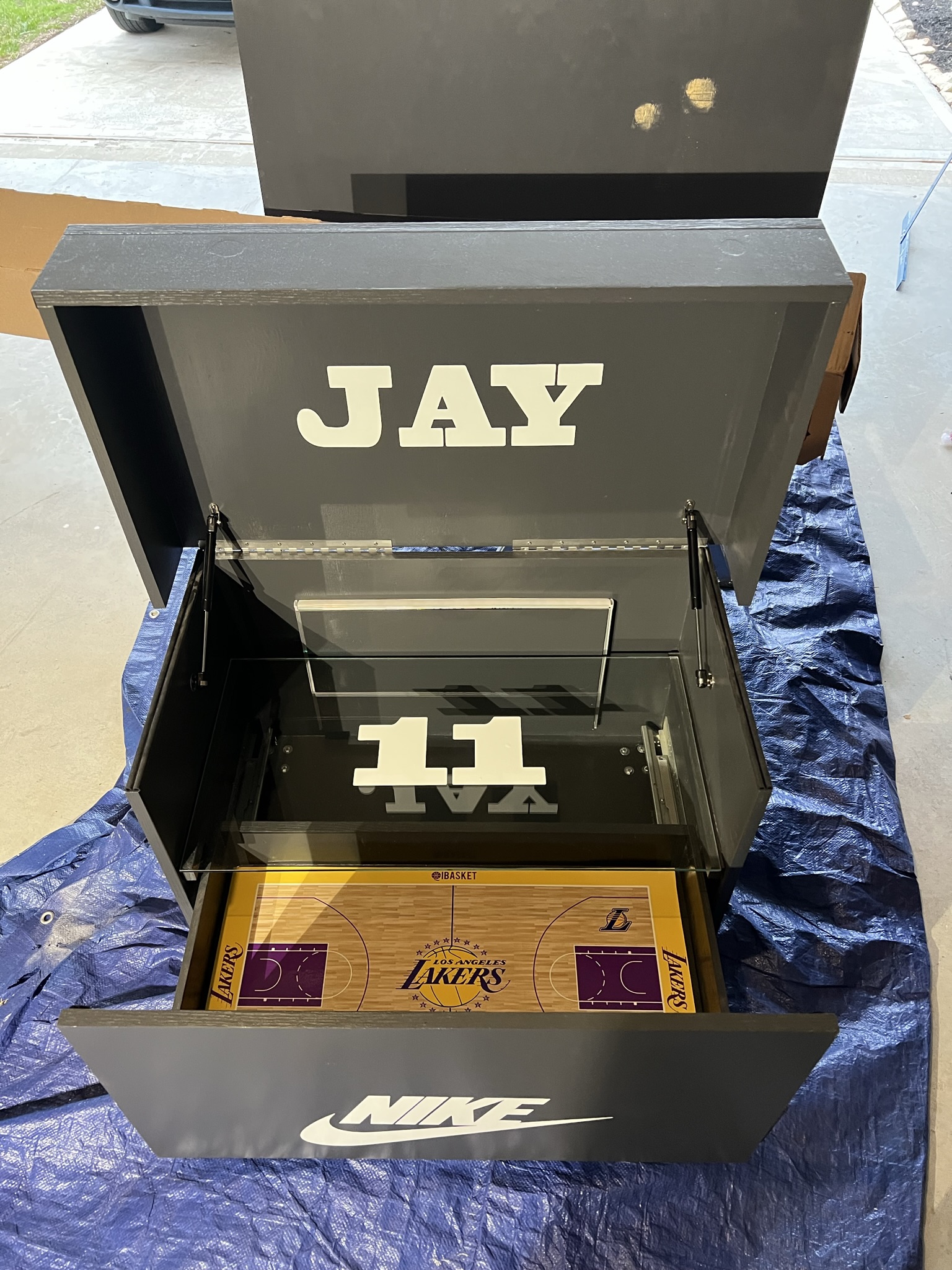 With the lights on and the lid up, it transforms your sneaker display into a centerpiece of creativity and craftsmanship. (Video coming soon.)
